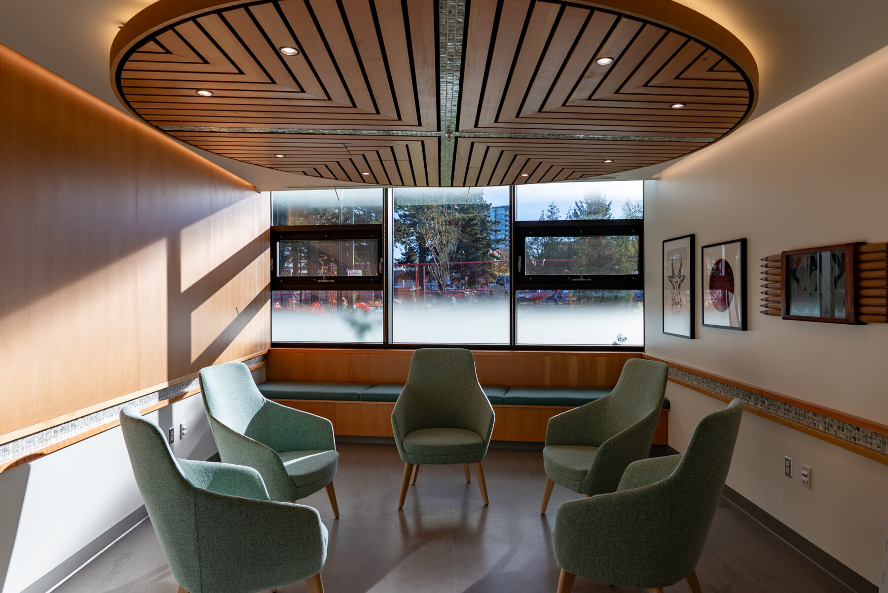 The First Peoples’ Gathering House at Simon Fraser University was constructed as a purpose-built cultural hub to support Indigenous students, faculty, staff, and community members. The 15,000 sq. ft. facility is anchored by a ceremonial hall accommodating 300 people and complemented by spaces including an Elders room, wellness room, classroom, dressing room, Indigenous peoples’ lounge, and a food service kitchen.