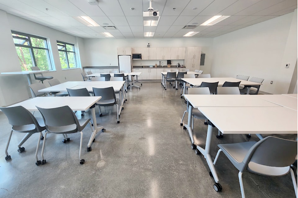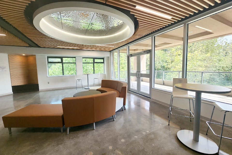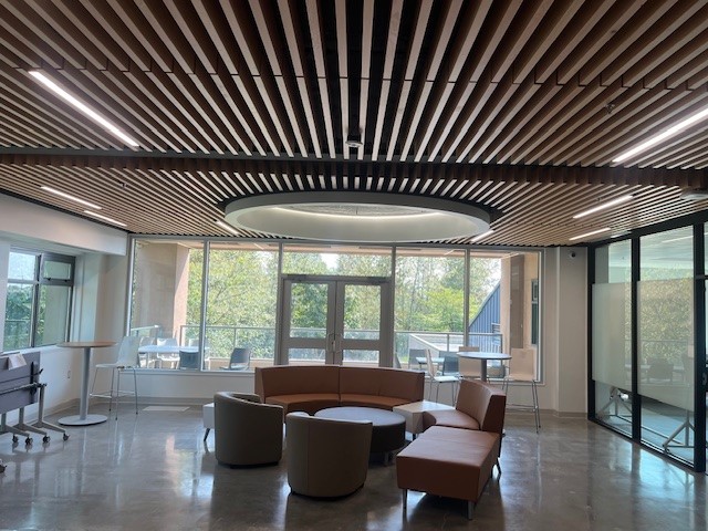 The Mission Campus Redevelopment (MCR) project involves a comprehensive interior renovation of two floors spanning approximately 17,222 sq. ft., and a subsequent relocation of the Academic Programs and Research Centre Institutes. The first floor was renovated to create a learning commons, a new library, a student gathering area with breakout rooms and collaboration space, and inclusive/non-gendered washrooms.